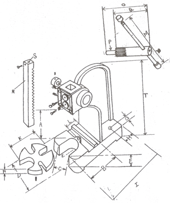 手壓沖床規格圖 | 單位 | NO.0 | NO.1 | NO.2 | NO.3 | NO.4 | NO.5 | T高 | 254 | 305 | 432 | 546 | 750 | 820 | D座寬 | 102 | 127 | 165 | 200 | 235 | 250 | I座長 | 240 | 270 | 410 | 460 | 540 | 670 | A行程 | 114 | 133 | 215 | 317 | 400 | 460 | R排齒規格 | 19x200 | 25.4x238 | 31.7x330 | 38.1x455 | 44.4x580 | 52.5x700 | S排齒孔 | 9.8 | 9.8 | 12.7 | 12.7 | 12.7 | 12.7 | E座高 | 45 | 49 | 78 | 85 | 132 | 119 | B前段 | 112 | 125 | 190 | 200 | 278 | 320 | L前座中心 | 52 | 65 | 92 | 85 | 135 | 150 | C下座中寬 | 30 | 44 | 62 | 65 | 89 | 95 | K圓盤外徑 | 90 | 115 | 170 | 170 | 250 | 250 | F圓盤厚 | 15 | 20 | 25 | 25 | 30 | 30 | M把手長 | 255 | 300 | 425 | 540 | 765 | 900 | N主軸外徑 | 30 | 34.9 | 47.6 | 63.5 | 63.5 | 76.2 | O主軸長 | 140 | 161.9 | 208 | 238 | 275 | 325 | P主軸小外徑 | 19 | 19 | 30 | 46 | 46 | 60 | Q齒輪長 | 100 | 120 | 160 | 180 | 195 | 240 | G | 26 | 29 | 17 | 30 | 49 | 67 | H | 36 | 66 | 97 | 97 | 154 | 189 | J | 48 | 50 | 72 | 100 | 120 | 140 | N.W.